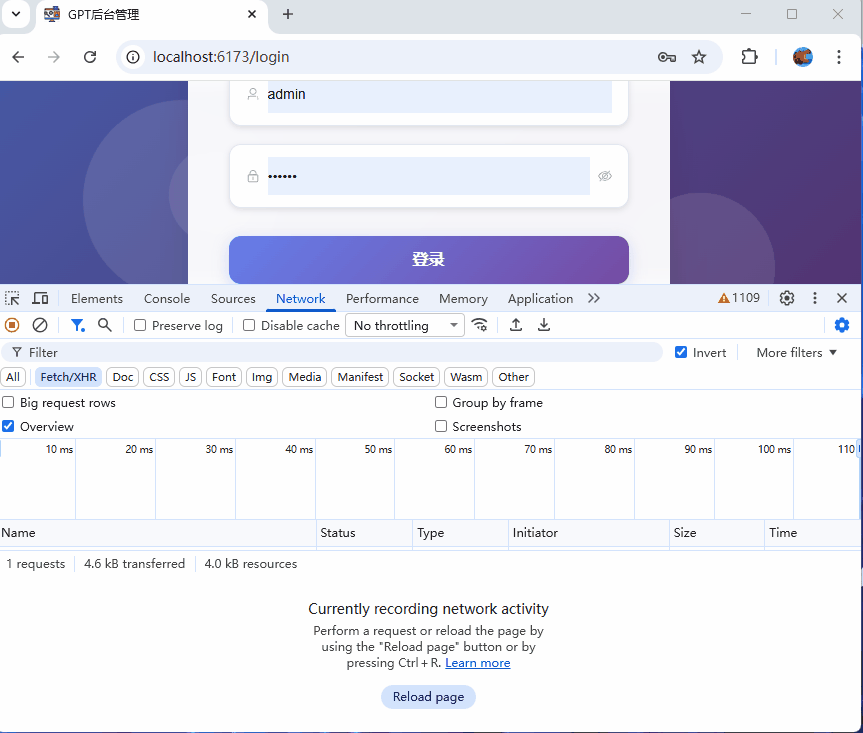 💡 目标:使用axios处理网络请求,从后端获取token,F12可以看到我们的网络请求: