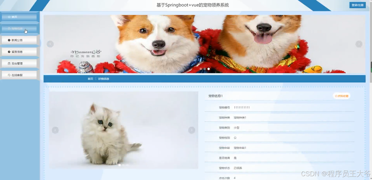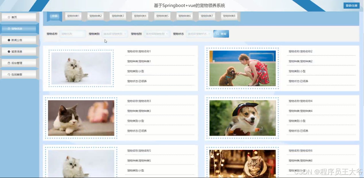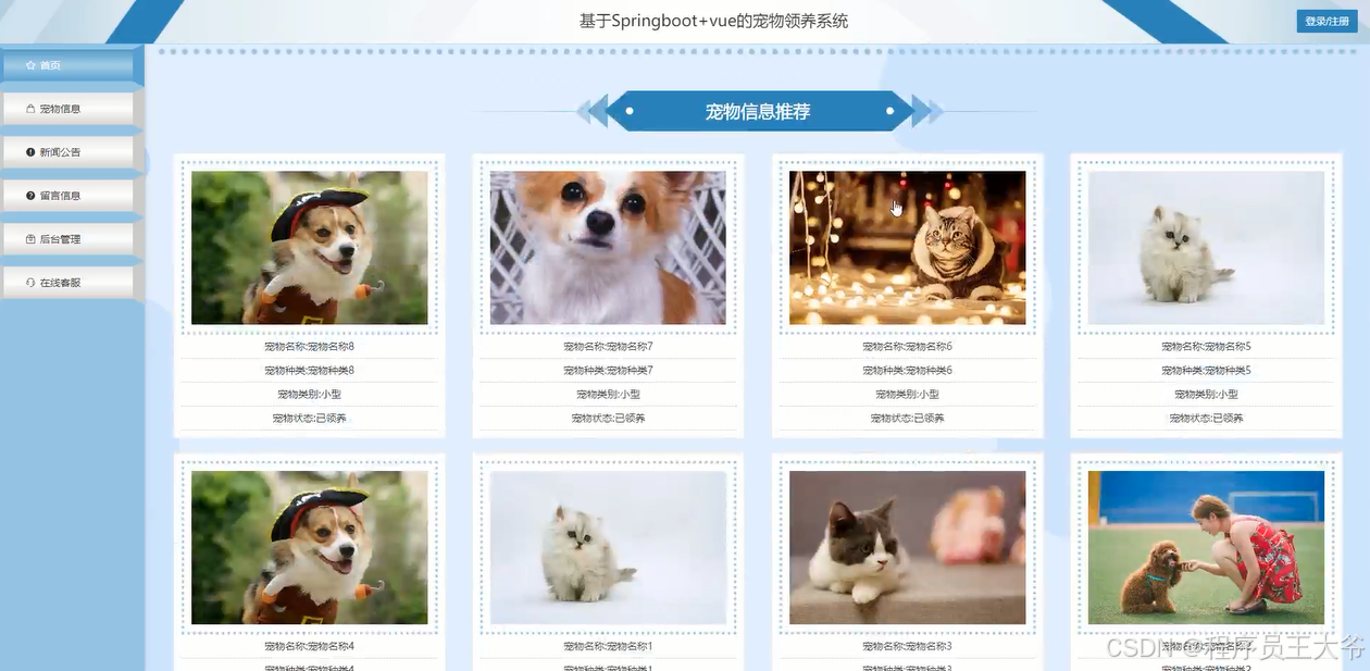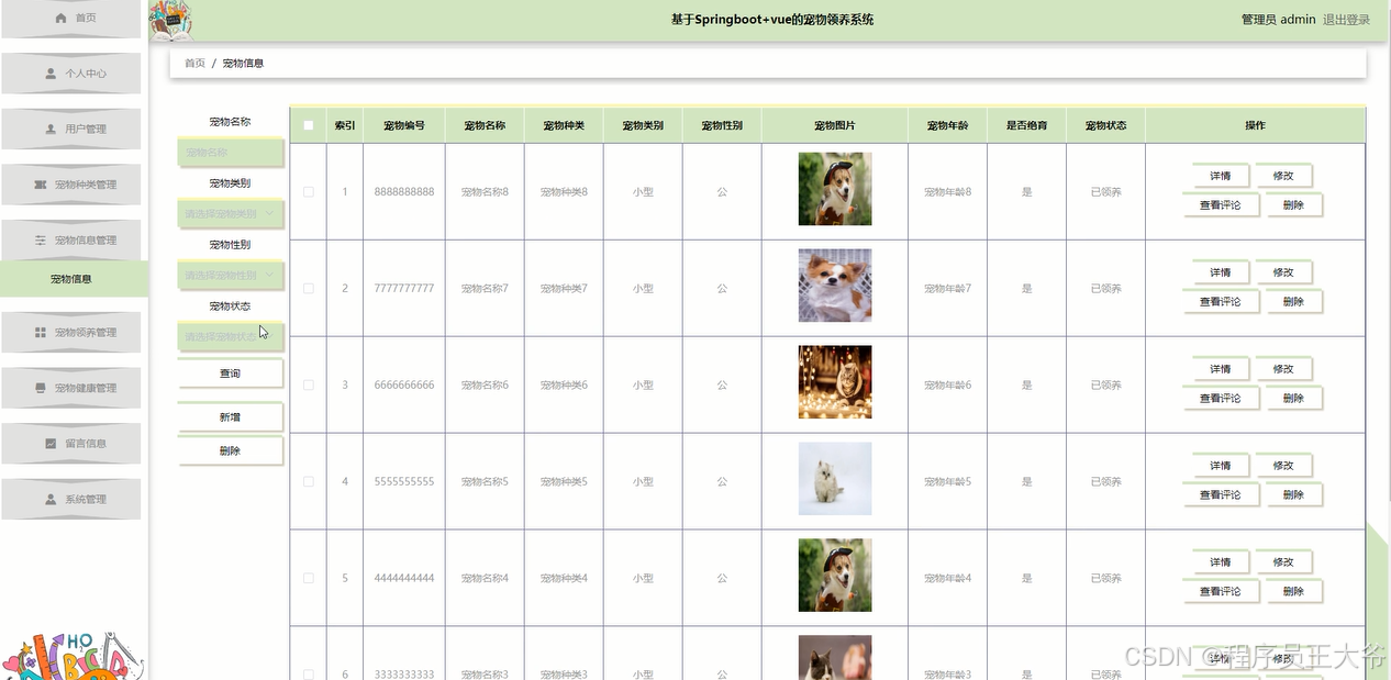 关键词:宠物领养,Spring Boot,Java