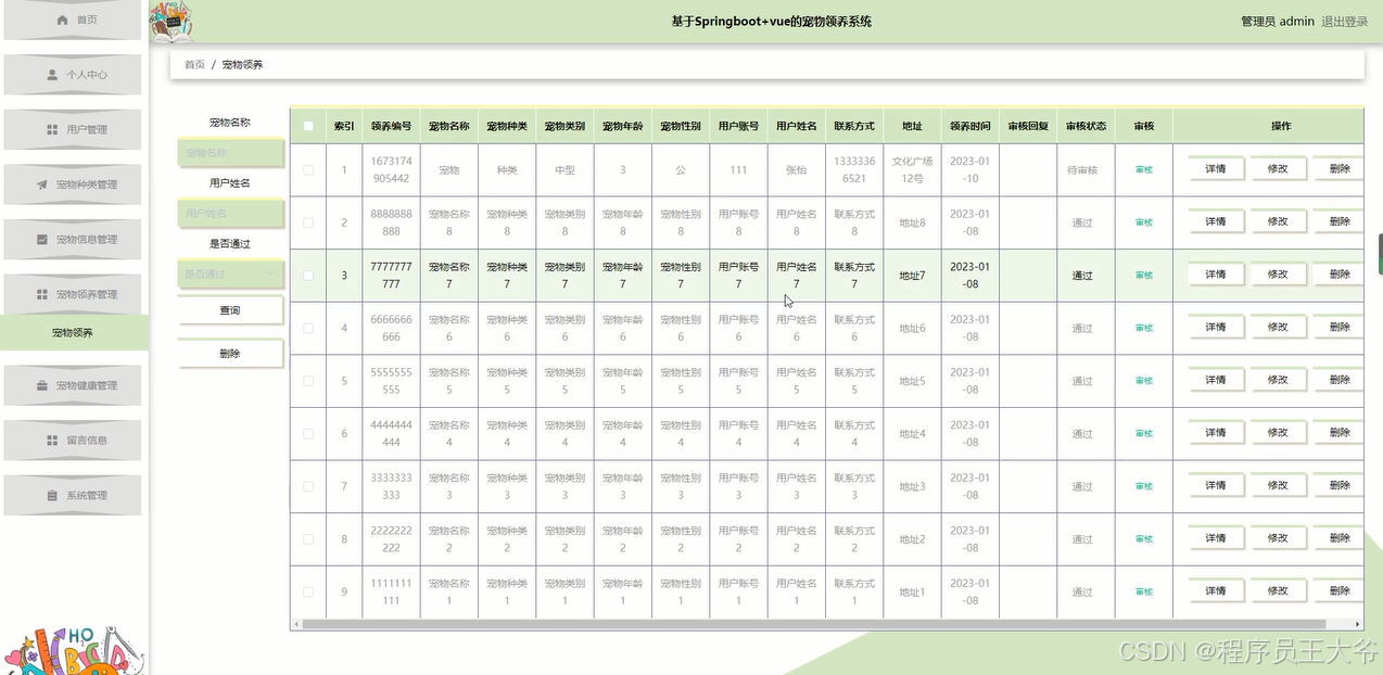 4.3 宠物领养管理实现