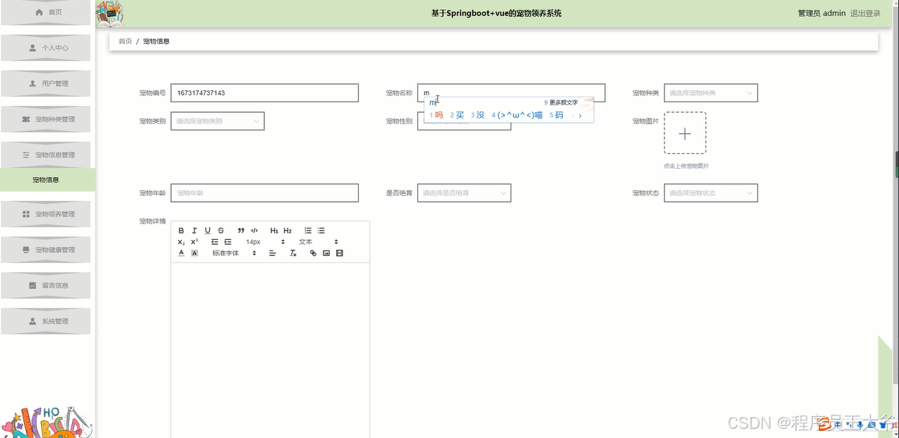 4.2 宠物信息管理实现