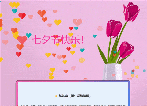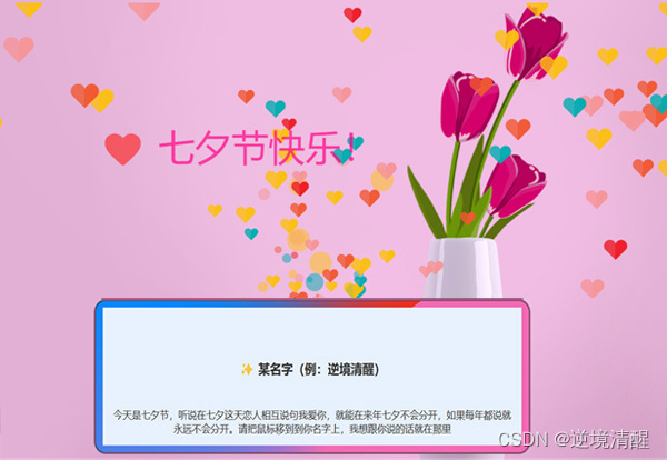 当你下载完整的代码后,只需更改名字即可发给你喜欢的人,祝你们七夕节快乐!
