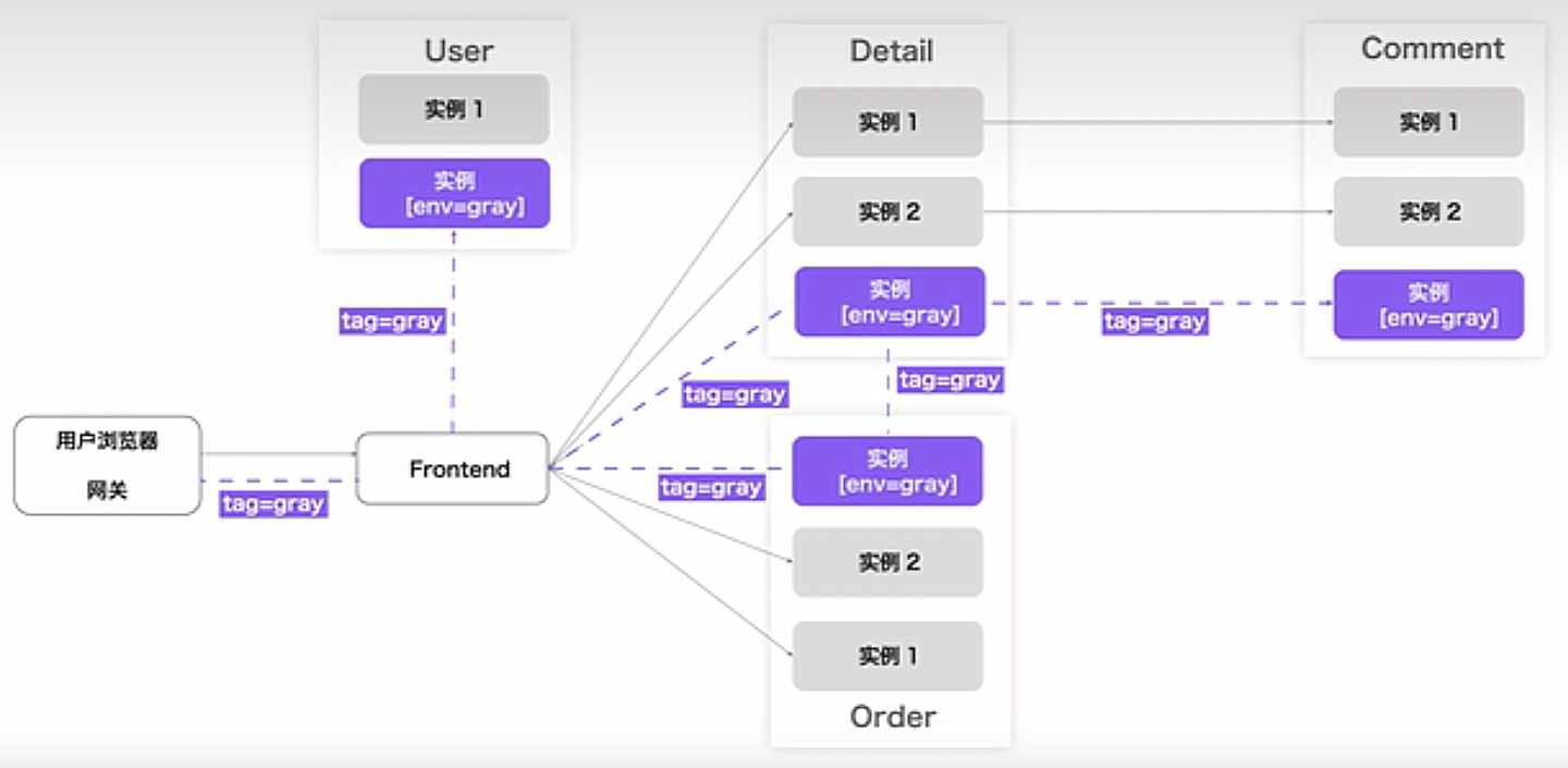 以一个线上环境的灰度隔离示例为例,