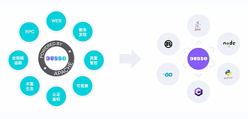 首先,Dubbo 作为服务开发框架解决了业务应用中微服务定义、暴露、通信与治理的问题,为业务应用开发定义了一套微服务编程范式。