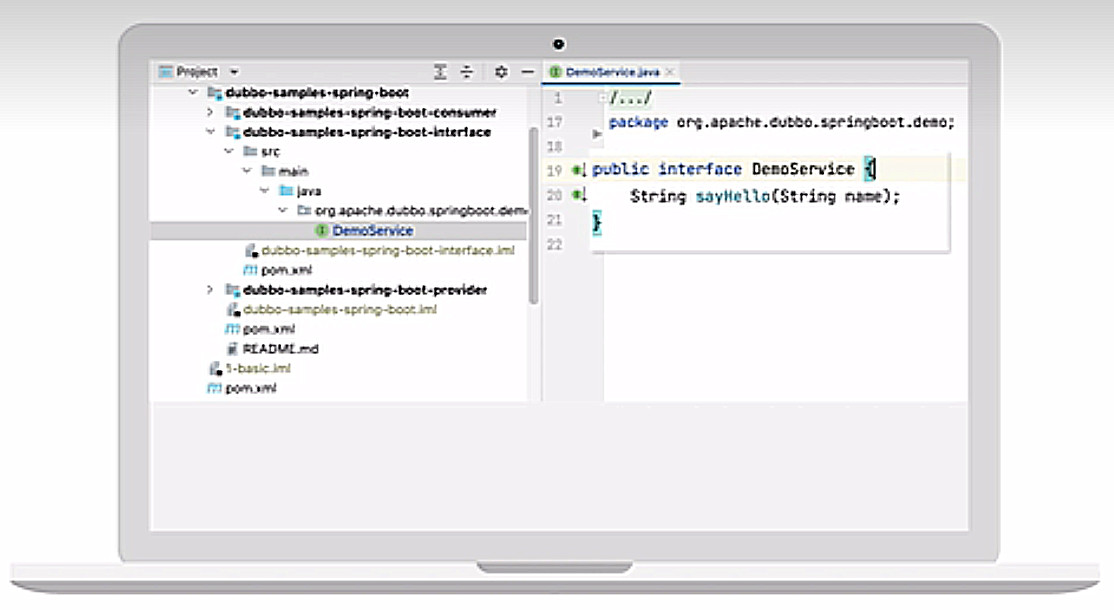 将模板项目导入IDE开发环境,定义Java接口作为Dubbo服务,