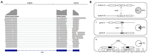 期望最大化算法被用来寻找映射到多个转录本的读数的最佳分布。这两种工具都非常节省内存和CPU,而且相当准确,特别是对成对端或长单端读数。伪比对不产生比对的BAM文件,所以如果需要可视化(例如,当使用RNA-seq进行转录物注释时),也应单独进行比对。