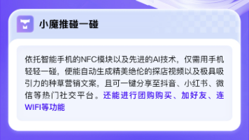 数字人版:定制直播数字人1:1还原真人,轻松完成7✖24直播工作,搭建矩阵直播间,接入deepseek轻松打爆文案。无人直播版:实景无人播,一台手机即刻开播,自动公屏回复,抓取问题真人语音实时回答。数字人克隆形象,克隆音色口播短视频,多国语言,智能文案智能剪辑,多种玩法降本增效。多账号绑定,定时定点发布,后端私信客资管理,视频智能Ai混剪多重剪辑方式。3⃣小魔推魔镜 实景/数字人。2⃣小魔推数字人分身。