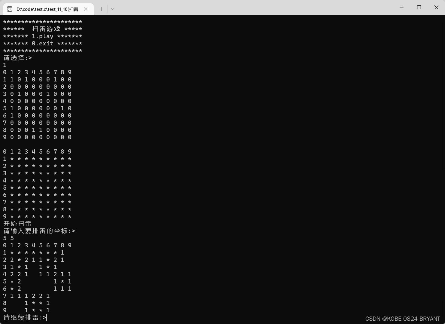 来到这的话初阶的扫雷游戏就写完了。你学会了吗?