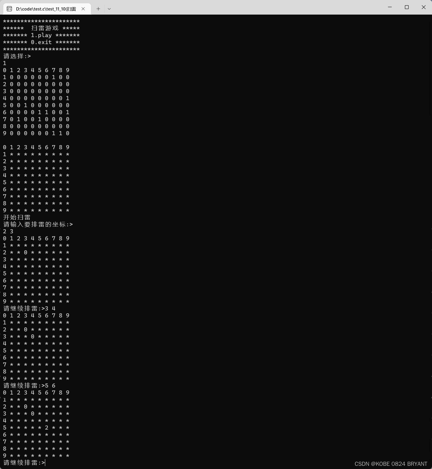 int ret = sweep_mine(mine,show, ROW, COL);//输入坐标,排查雷,赢了或者炸死了返回1