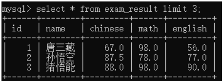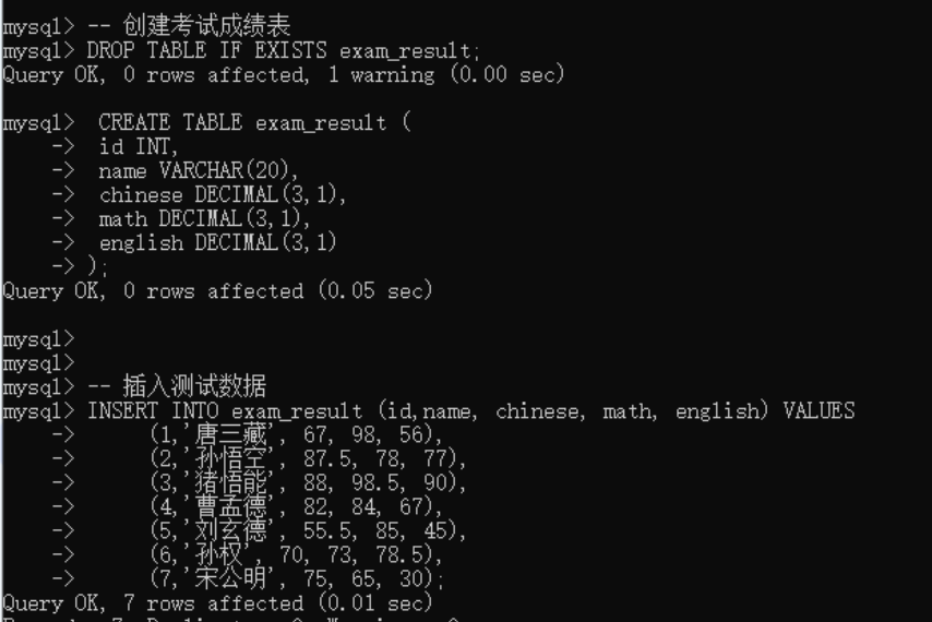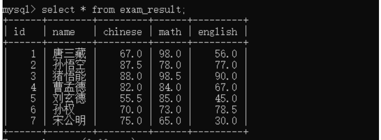 INSERT INTO exam_result (id,name, chinese, math, english) VALUES