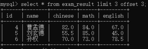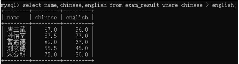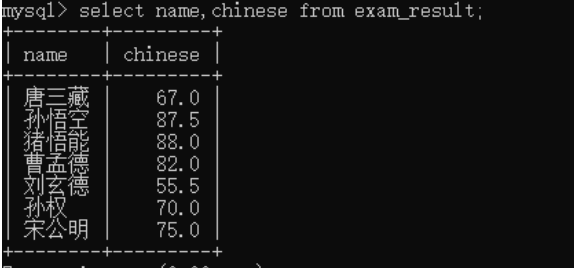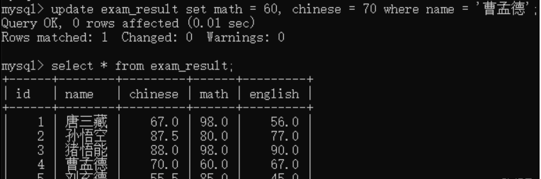 update exam_result set math = 60, chinese = 70 where name = '曹孟德';