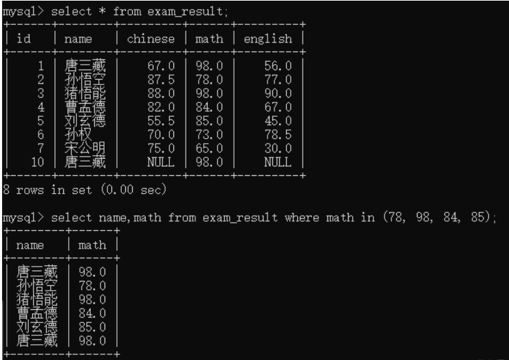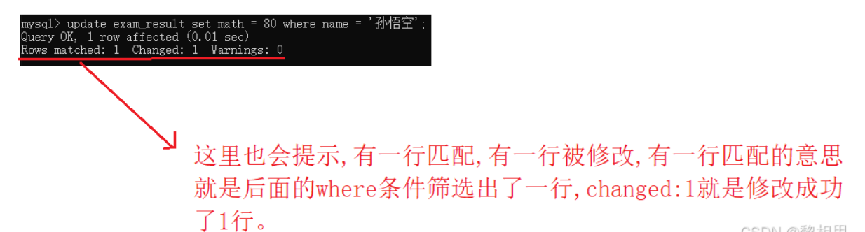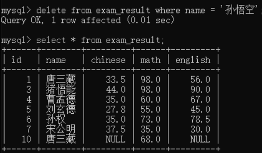 当修改完成之后再次查询里面的数据,发现孙悟空的数学成绩确实被修改为80了。