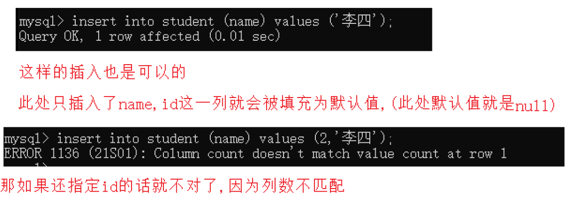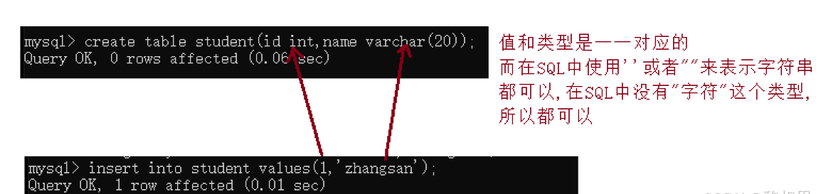 //values后面括号中的值要和列相匹配,(列的个数和类型)