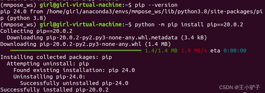 若版本大于22.0.2,则降低pip版本为20.0.2