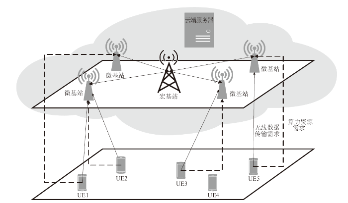 (2)用户接入:用户选取信号最强的基站作为服务基站,并开始通信传输和算力计算。
