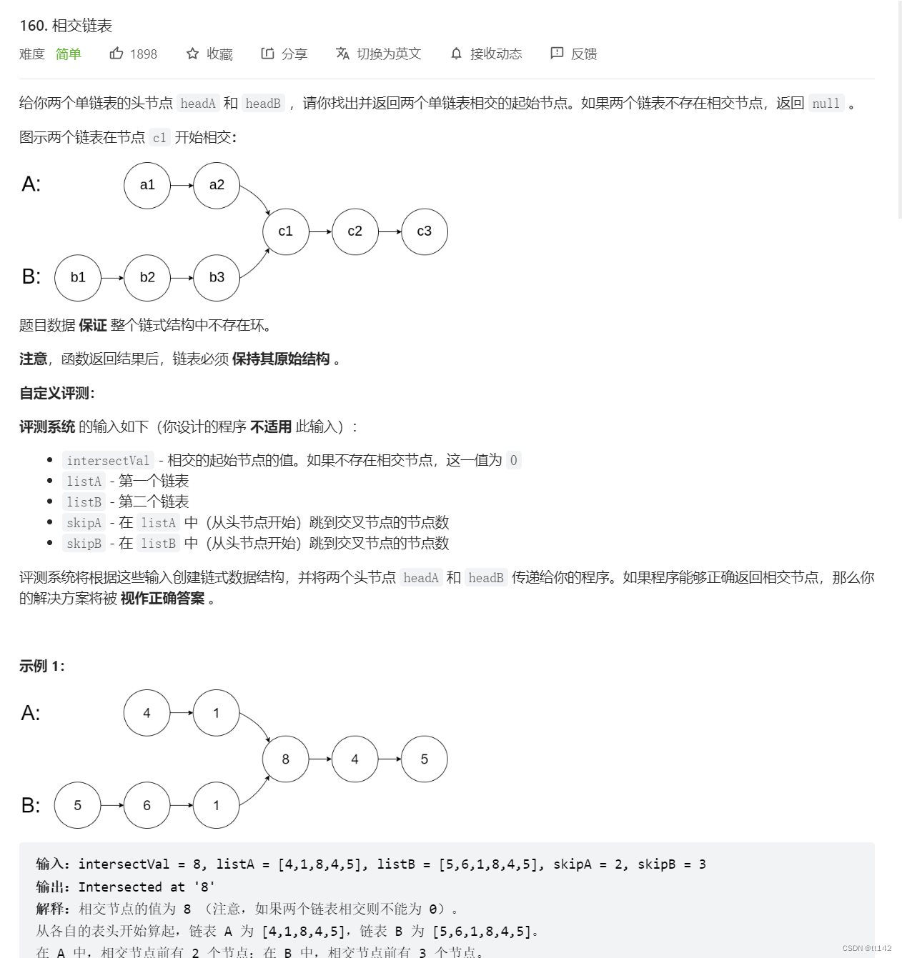 肯定是先看一看相不相交,然后如果相交,让两个链表啊从同一个起始位置开始,往后遍历到有相同的节点!!!是相同的节点而不是节点的val相等!!!!!!!!