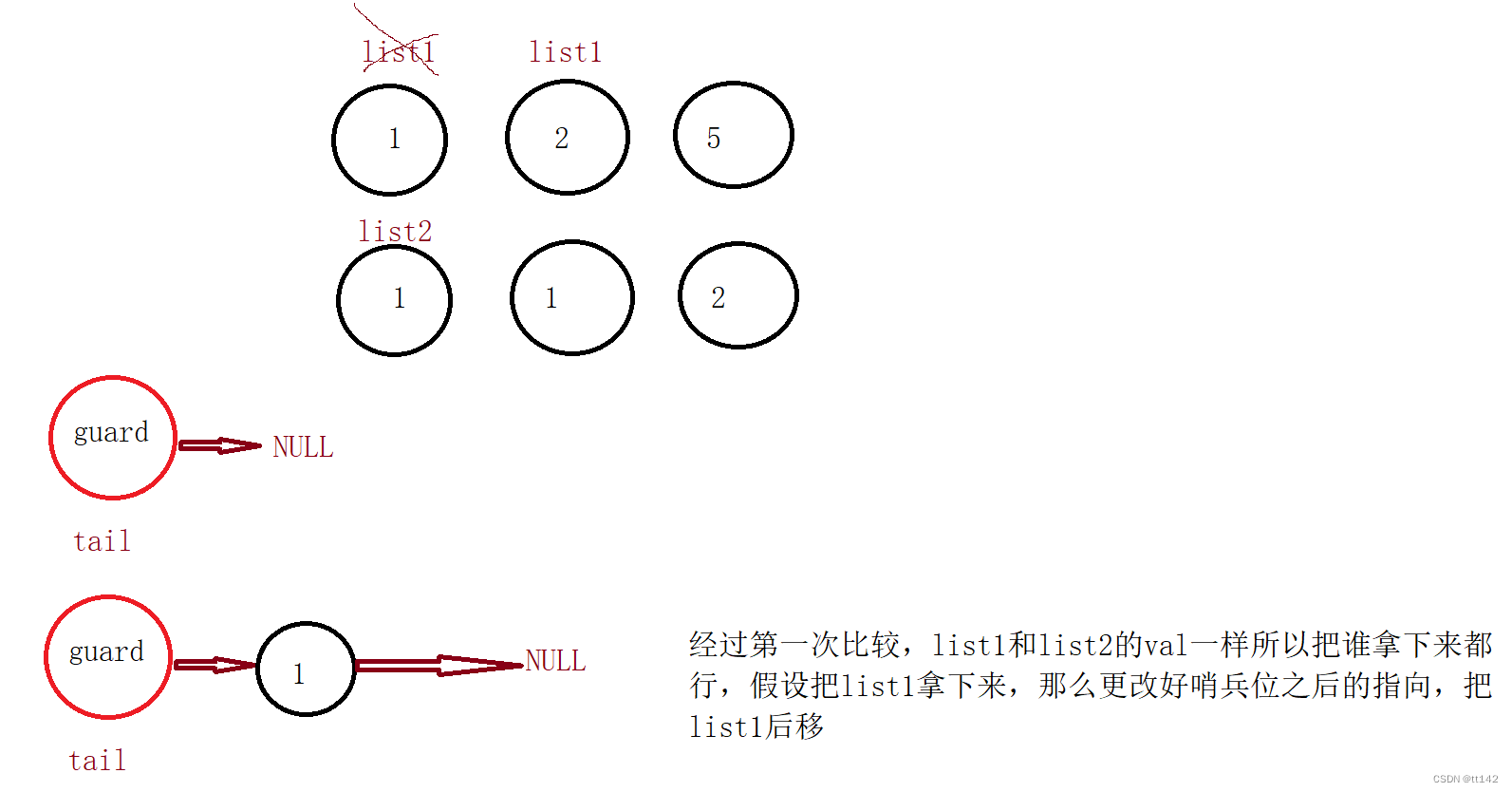 struct ListNode* mergeTwoLists(struct ListNode* list1, struct ListNode* list2){