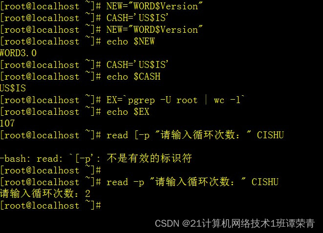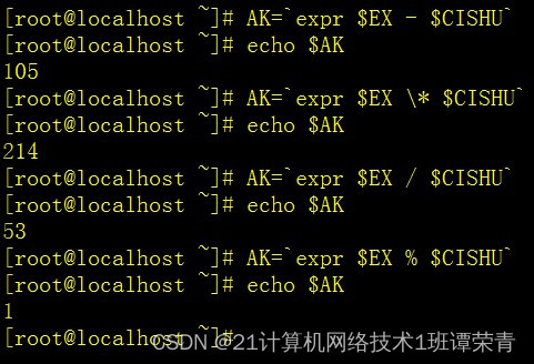 [root@localhost ~]# echo “$EX $CISHU“ (它们则没结果)