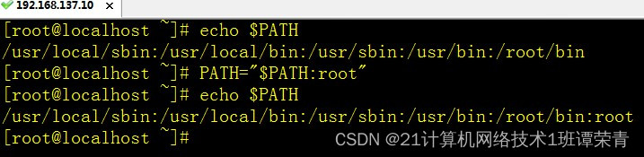 [root@localhost ~]# PATH=“$PATH:/root” (添加一下新路径/root)