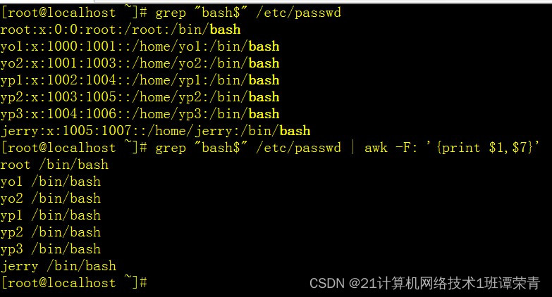 [root@localhost ~]# grep “bash$” /etc/passwd(先执行clear)