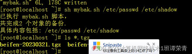 [root@localhost ~]# sh mybak.sh /etc/passwd /etc/shadow