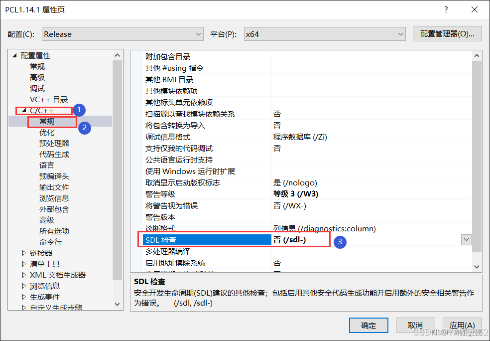 3.5 C/C++—常规—SDL检查:否