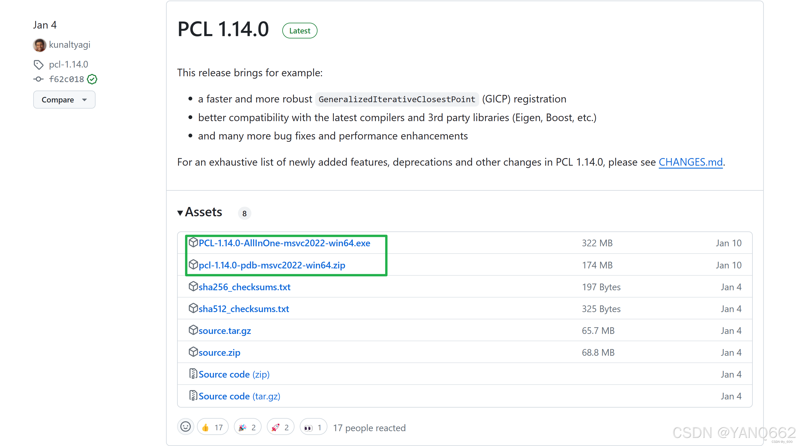 1.在GitHub下载安装包Releases · PointCloudLibrary/pcl (github.com),下载前两个
