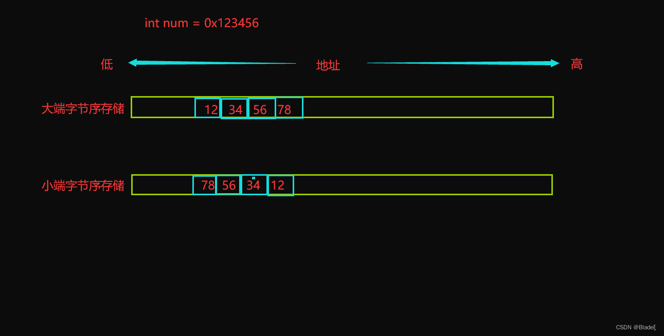 注意:大小小端字节序存储是以字节为单位的