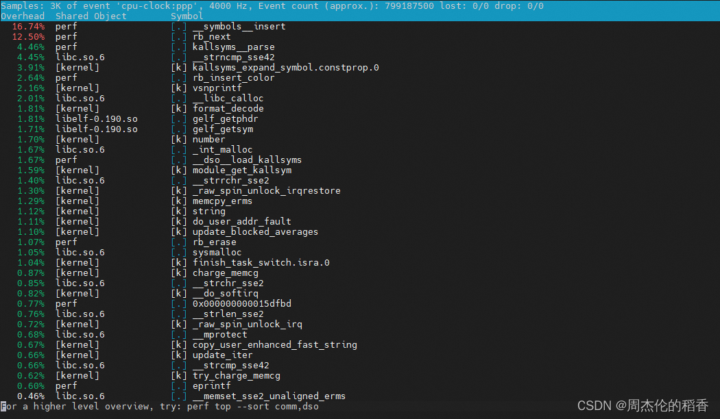 .perf.data文件。此文件可以使用perf report、perf annotate等命令进行详细分析。 - perf report:读取先前使用