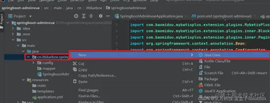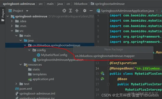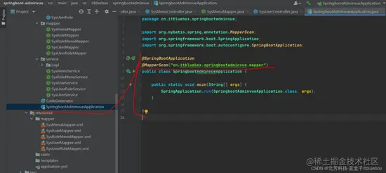@MapperScan("cn.itbluebox.springbootadminvue.mapper")