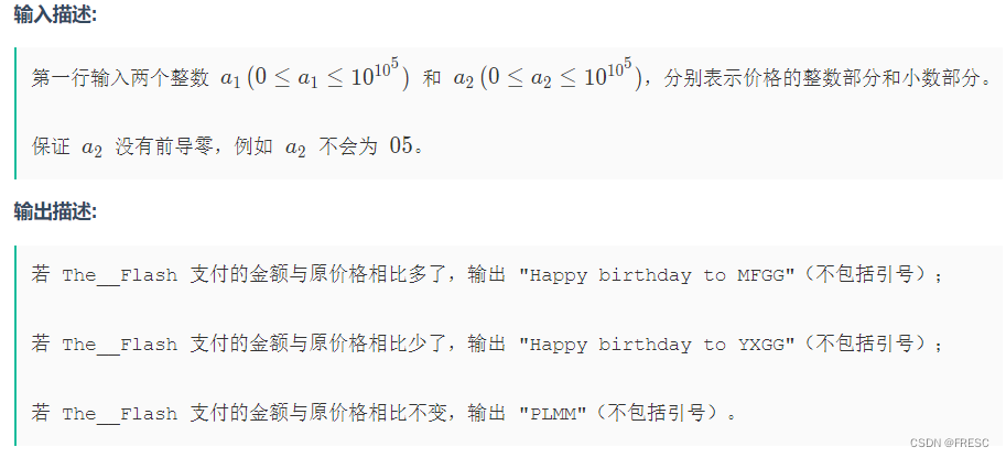 该博客介绍了一个C语言程序,用于处理两个字符串类型的账单。根据输入的字符串小数部分首字符进行特定判断,如:大于5打印'Happy birthday to MFGG',小于5且大于0打印'Happy birthday to YXGG'。如果小数部分首字符为5,还会检查后续数字及整数部分的奇偶性。当小数部分全为0时,输出'PLMM'。