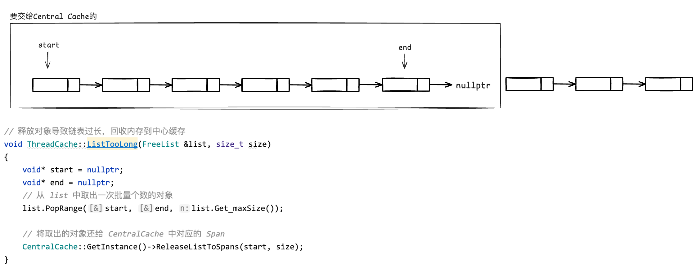 现在我们回到 Thread Cache 在尾删的部分,已经保存好了那个一连串的内存对象