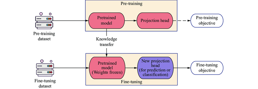 **步骤:**加载预训练模型 → 在模型中添加可训练的组件或选择部分参数 → 在新任务数据集上训练这些组件或参数。