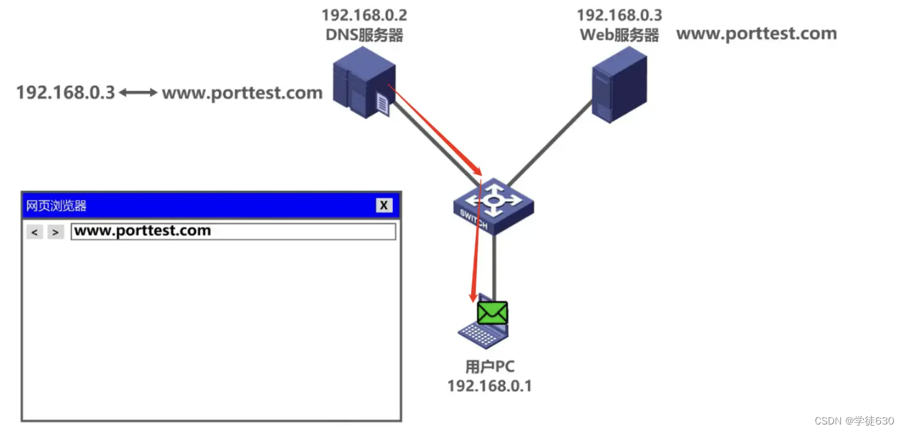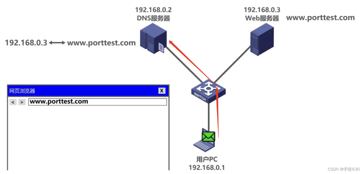 然后用户PC中的DNS客户端进程会发送一个DNS查询请求报文