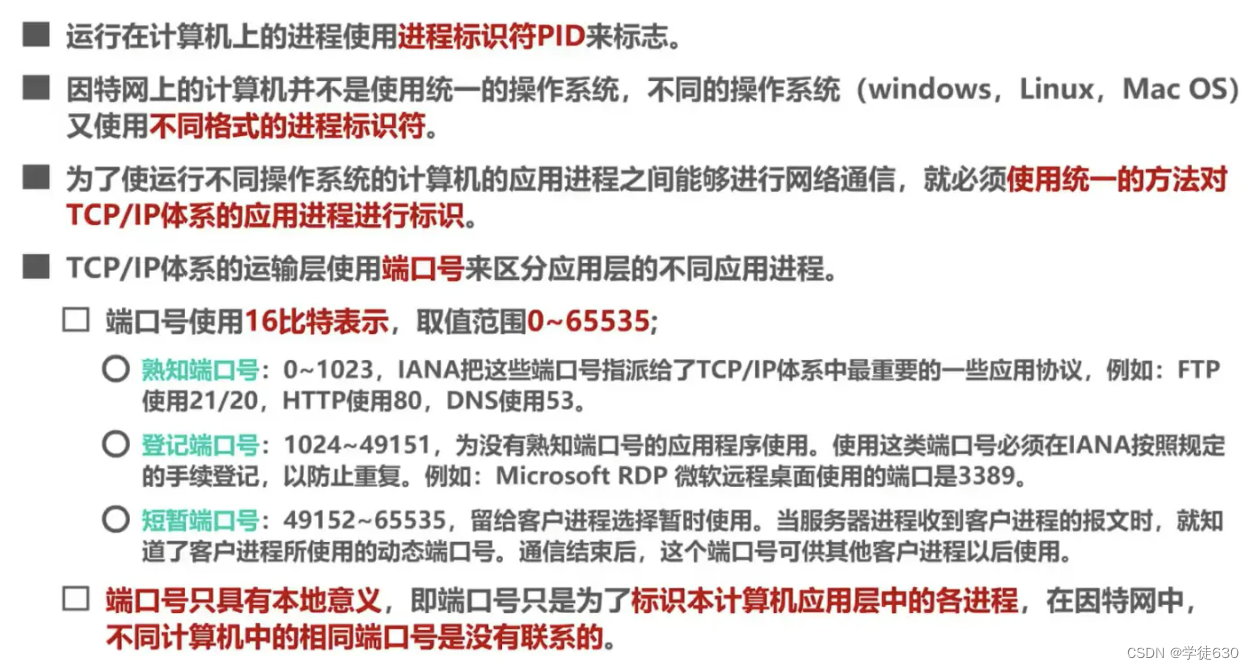 这里端口并不是指看得见、摸得着的物理端口,而是指用来区分不同应用进程的标识符
