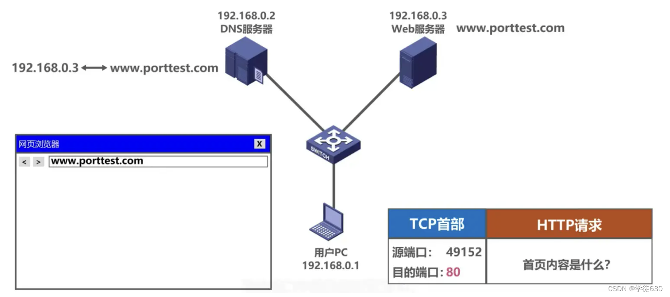 现在用户PC中的HTTP客户端进程可以向Web服务器发送HTTP请求报文(和DNS发送和接收流程差不多)