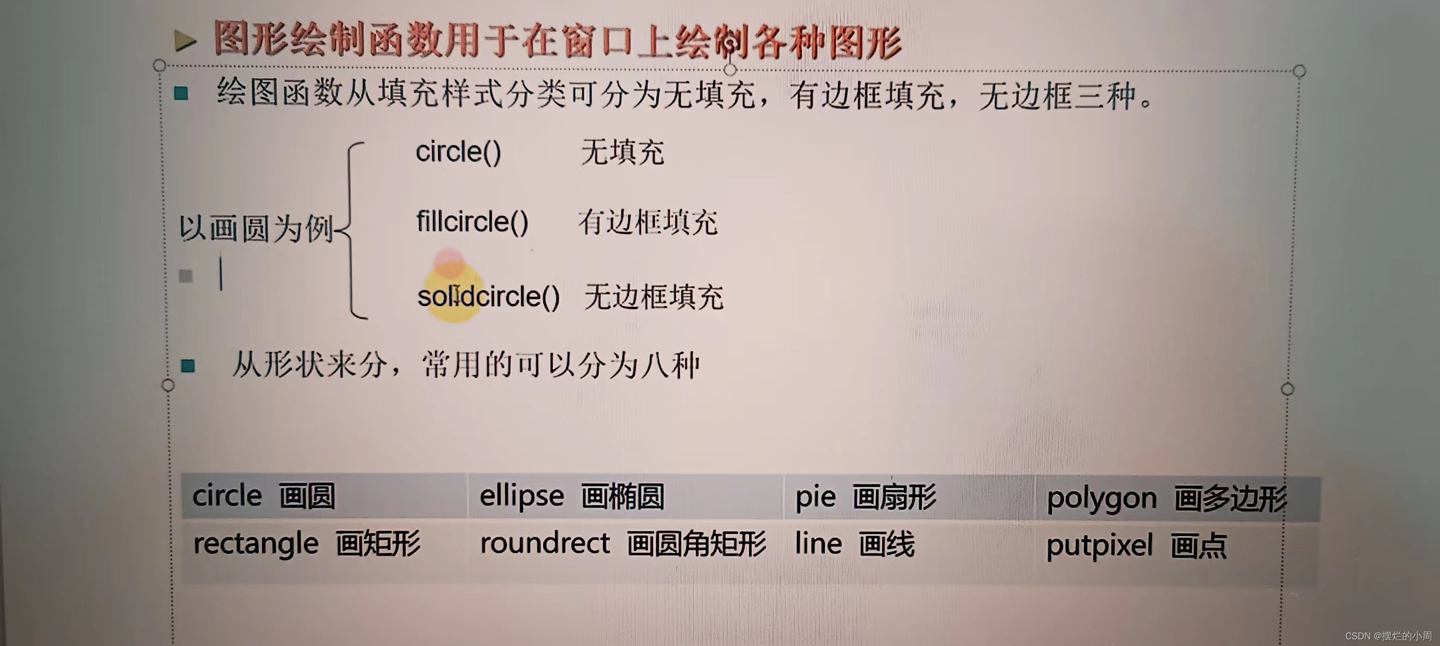 solidcircle(50, 250, 50);//无边框有填充