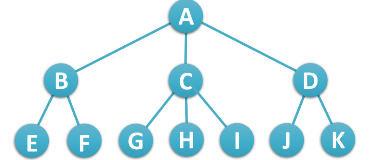 如下图所示,将B视为A的长子,则C,D都是B的兄弟,然后将C,D与B相连,形成二叉树的样子,并以此类推,将E视为B的长子,使其与F相连......