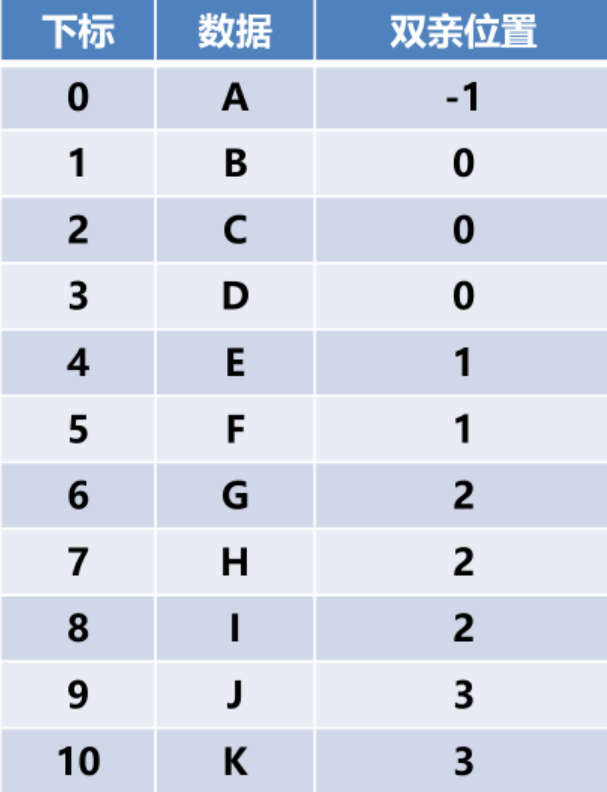int parent; //双亲位置(下标)