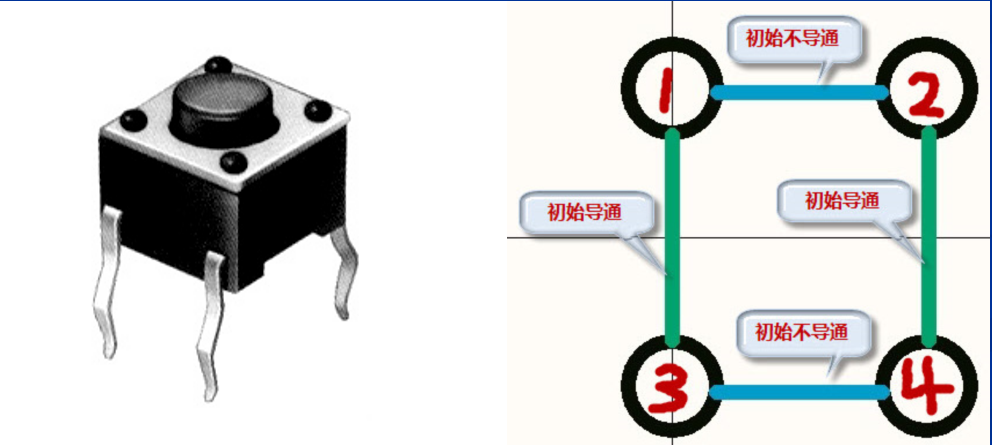 轻触开关是一种电子开关,使用时,轻轻按开关按钮就可使开关接通,当松开手时,开关断开。我们使用的开关如下图: