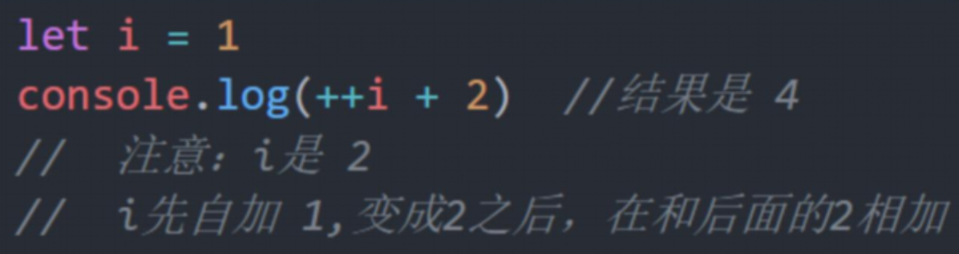 前置自增:先自加再使用(记忆口诀:++在前 先加)