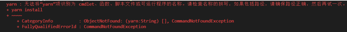 无法将“yarn”项识别为 cmdlet、函数、脚本文件或可运行程序的名称。请检查名称的拼写,如果包括路径,请确保路径正确 ,然后再试一次。