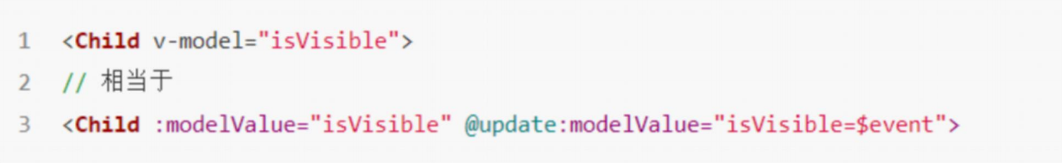 在 Vue3 中,自定义组件上使用 v-model, 相当于传递一个 modelValue 属性,同时触发 update:modelValue 事件