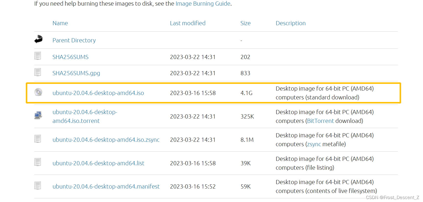 进入Ubuntu releases下载,安装包名称为ubuntu-20.04.6-desktop-amd64,大小4.1G
