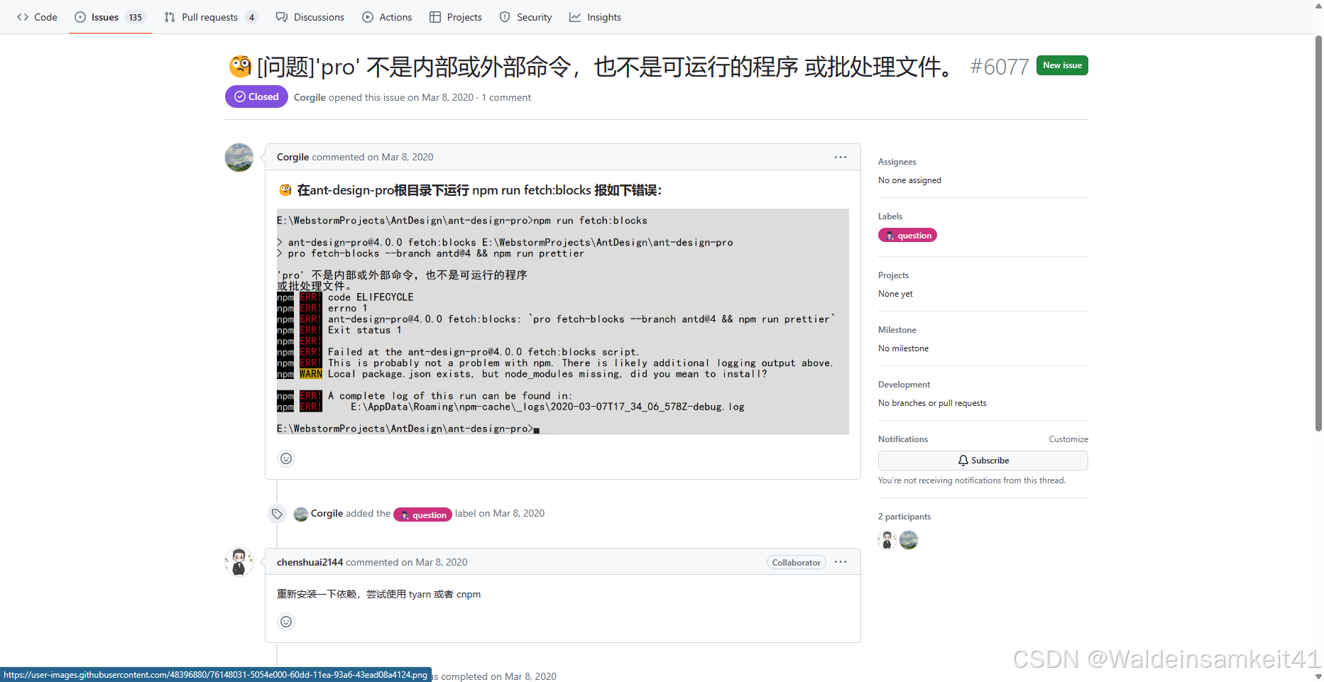 项目初始化踩坑记录 思考过程:突然空了个文件我也不知道怎么办,直接重新下载全部就好了。这个在github上有,但是挺少见的?可能是npm版本的问题?这个没有在github上找到解决方法,于是我在命令行。执行这个之后,就可以重新运行了。