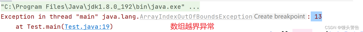 System.out.println(array[3]); // 数组中只有3个元素,下标一次为:0 1 2,array[3]下标越界