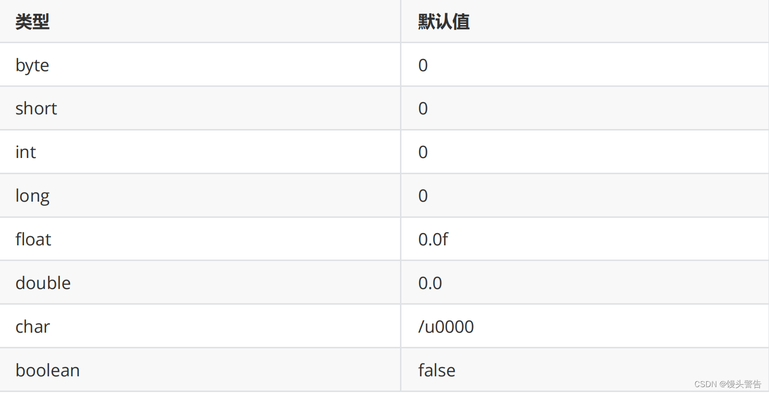 对于不同的数据类型,其数组中元素的默认值也是不一样的
