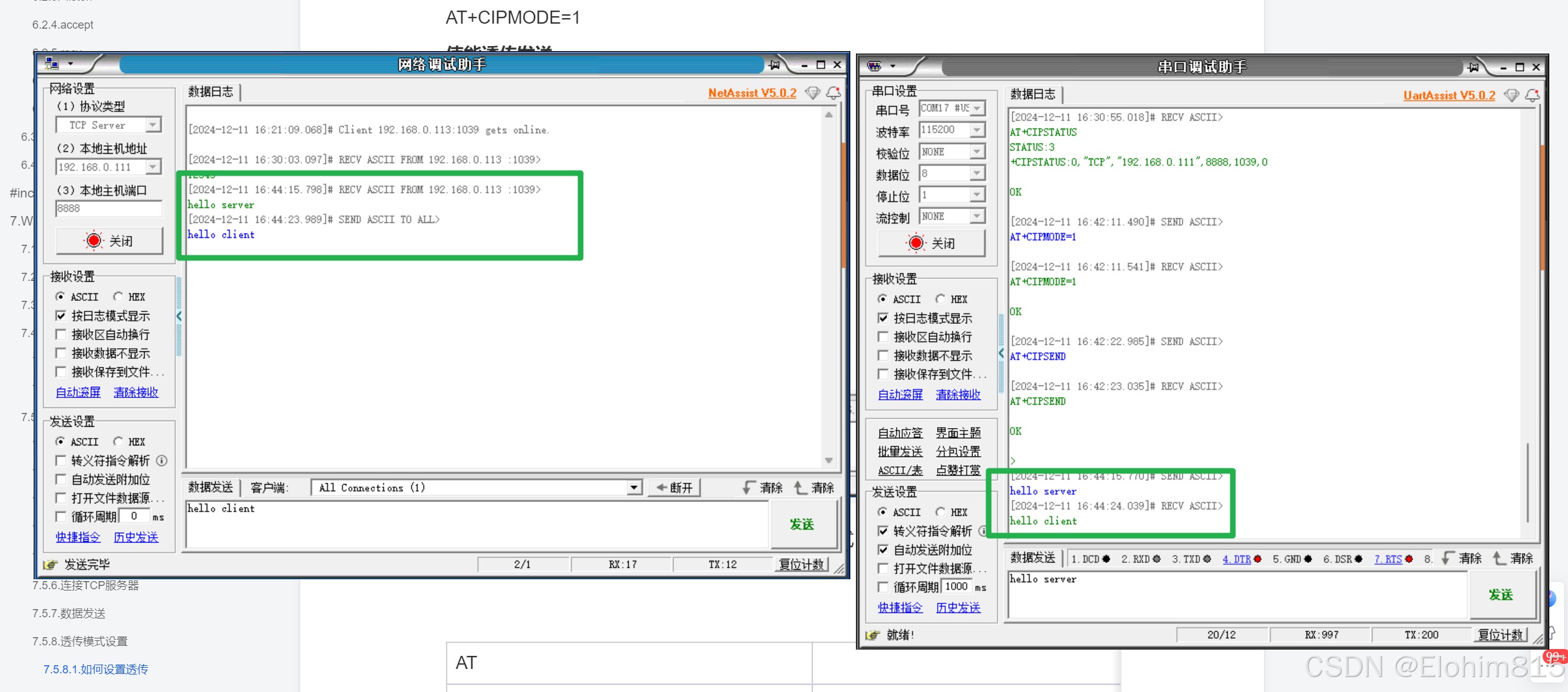 3.5的发送太别扭了,每次发送要提前输入指令,还有长度限制,并不高效和方便, 可以不可以有一种设置,只要设置好了,我们就可以让串口助手直接和服务器进行通信,ESP8266只作一个转发者的身份存在,当发送指定字符时才退出通信。这就是透传,让ESP8266透明化的一种数据传输方式。