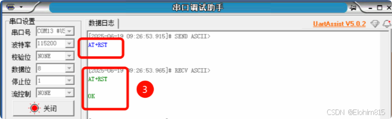 此指令相当于按了一下复位按键,有如下回复则是成功复位![]()