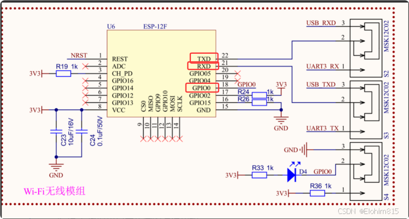 GPIO0:控制WIFI模式,GPIO0为低电平是下载模式,高电平为运行模式