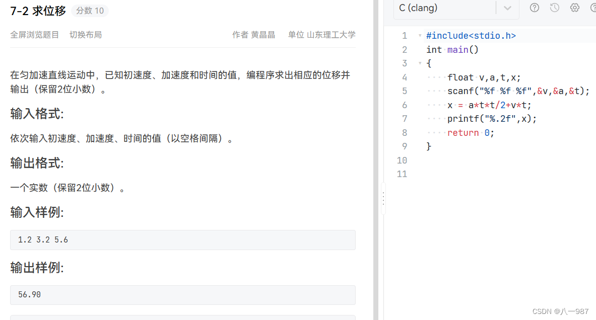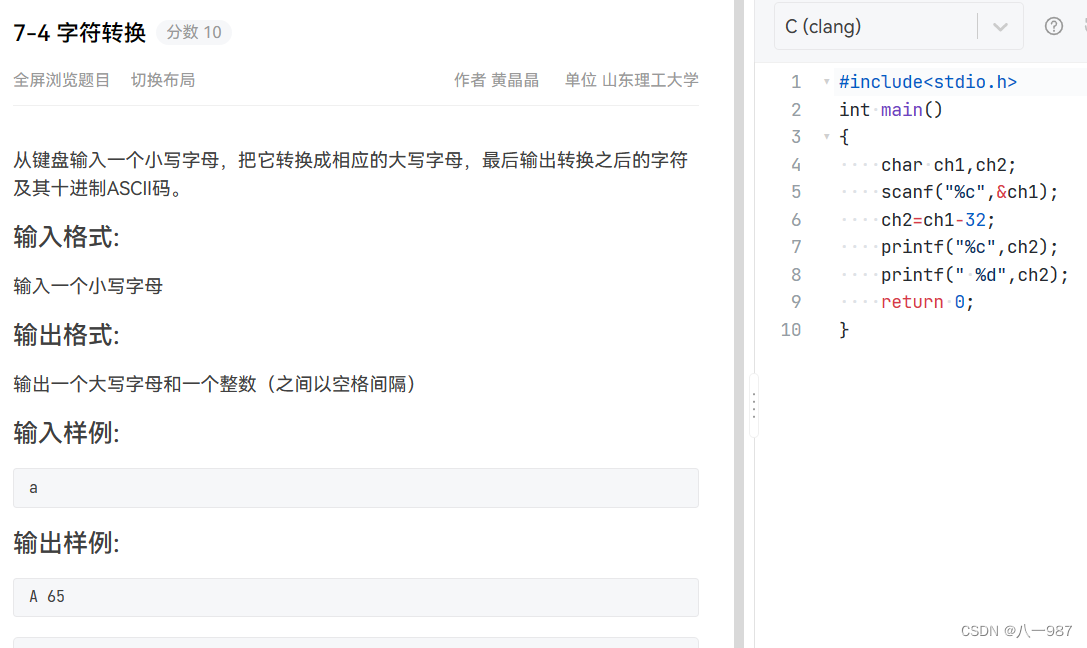 3.再看输出时的区别,题目要求输出一个大写字母和一个整数,因此分别为%c和%d